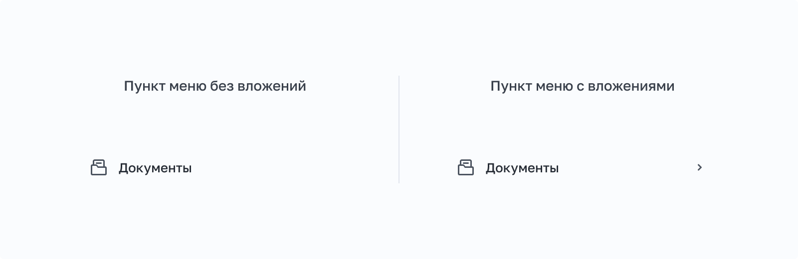Если пункт меню содержит вложенные подразделы, то рядом с ним отображается стрелка, указывающая на наличие вложений. Эта стрелка помогает пользователю понять, что пункт можно развернуть для доступа к дополнительным опциям. Если вложенные разделы не предусмотрены, стрелка не отображаются, выключить ее можно через параметр Right icon?