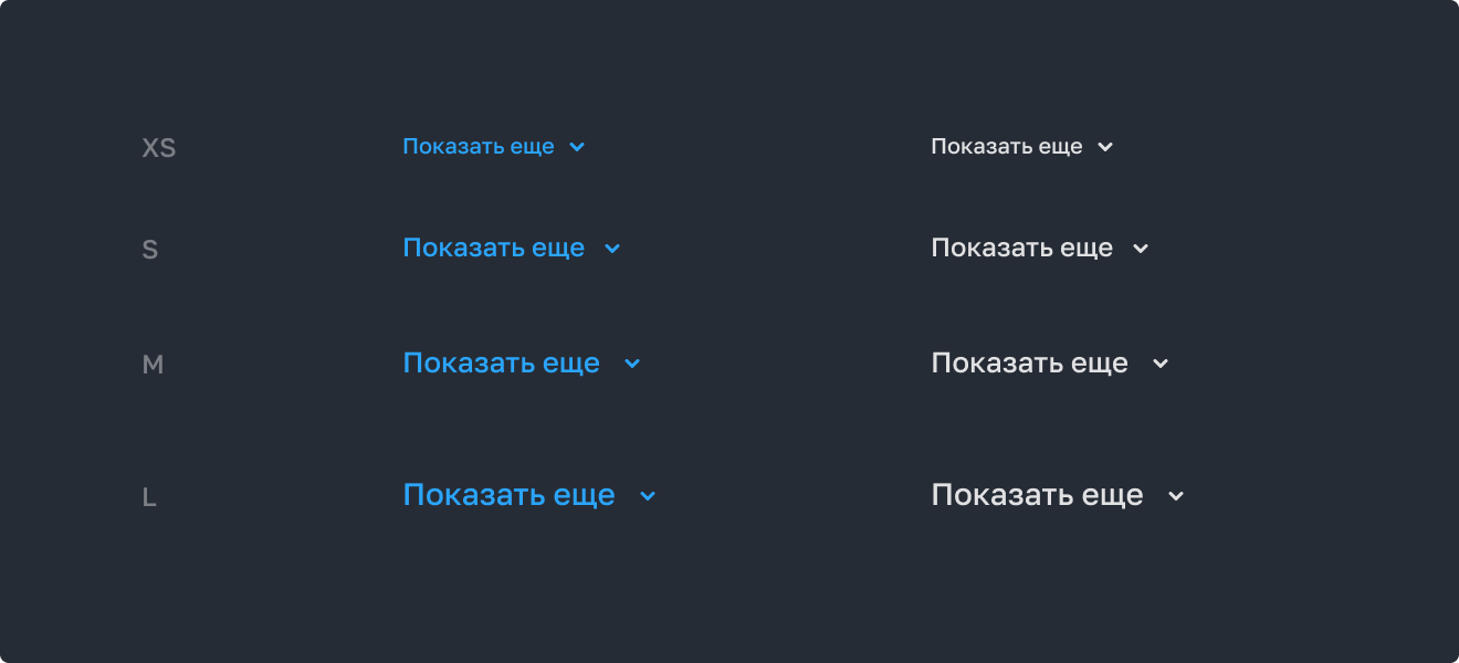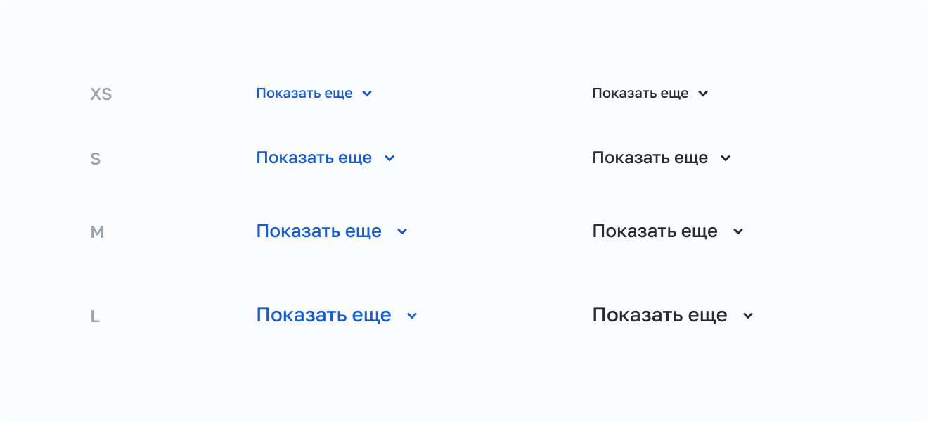 Имеет 4 основных размера: XS, S, M и L.