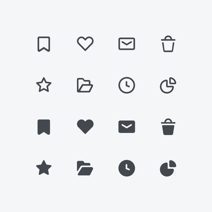 В своих проектах мы используем 2 типа иконок: контурные и заполненные